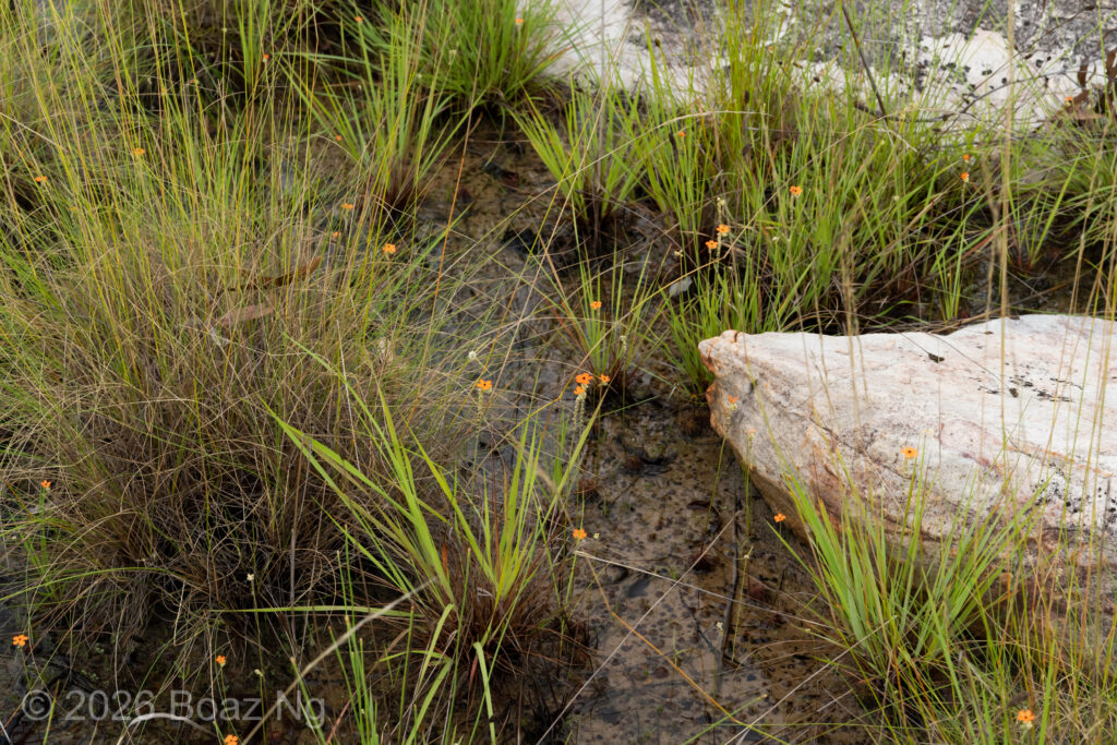 The species is known from coastal areas north of Kalumburu and around Napier Broome Bay. It tends to grow in sandy substrates within exposed, seasonally wet ironstone fields as well as gravelly seeps near sandstone outcrops. These habitats dessicate during the dry season. The plants generally grow as annuals but may persist as perennials in wetter niches.