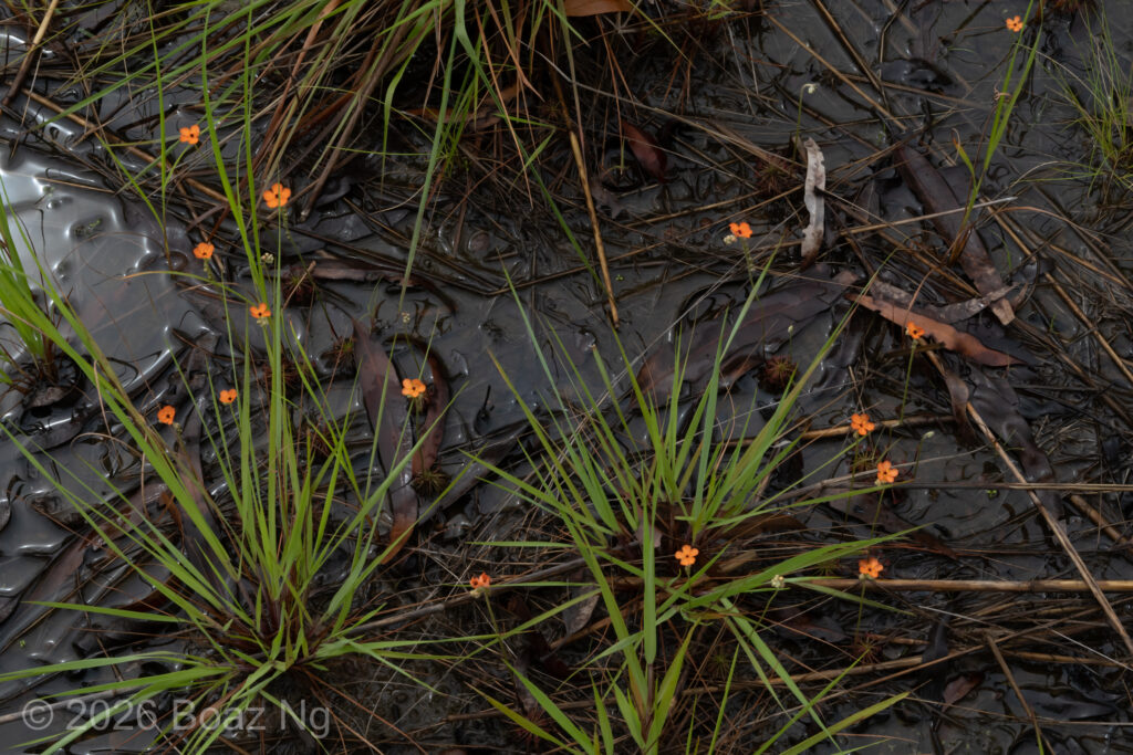 Drosera actinioides is similar to other sundews in the Drosera paradoxa complex, which are united by their thin, semi-raised rosettes. In nature, it grows alongside a taxon known as D. aff. paradoxa ‘swamp form’, which shares similar morphology and proportion. It is readily distinguished from all other petiolaris complex sundews by its orange flowers and fleshy, clustered stigmas.