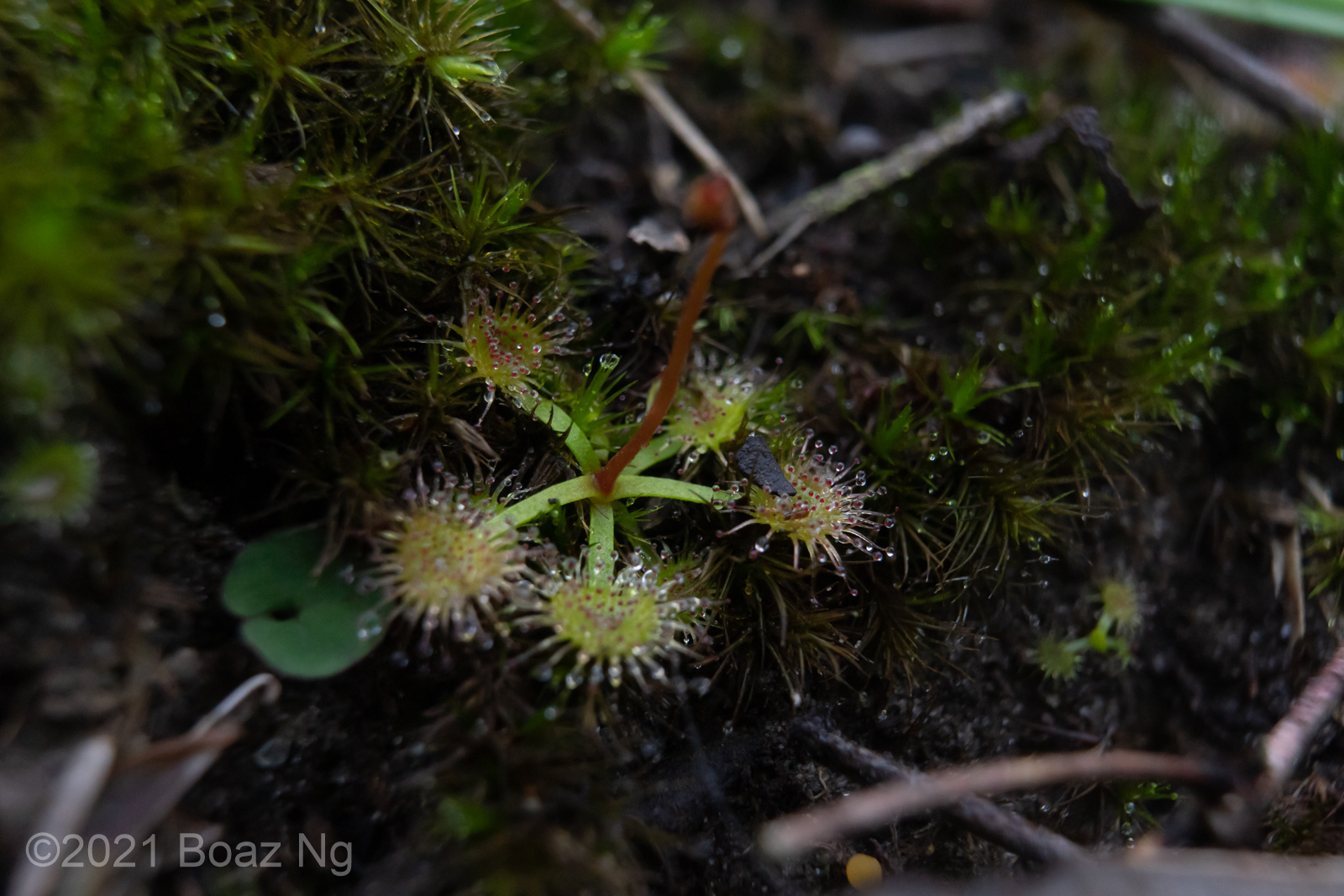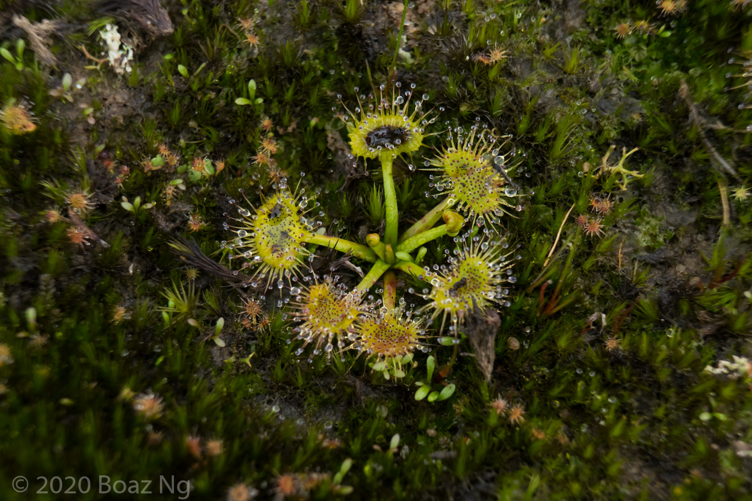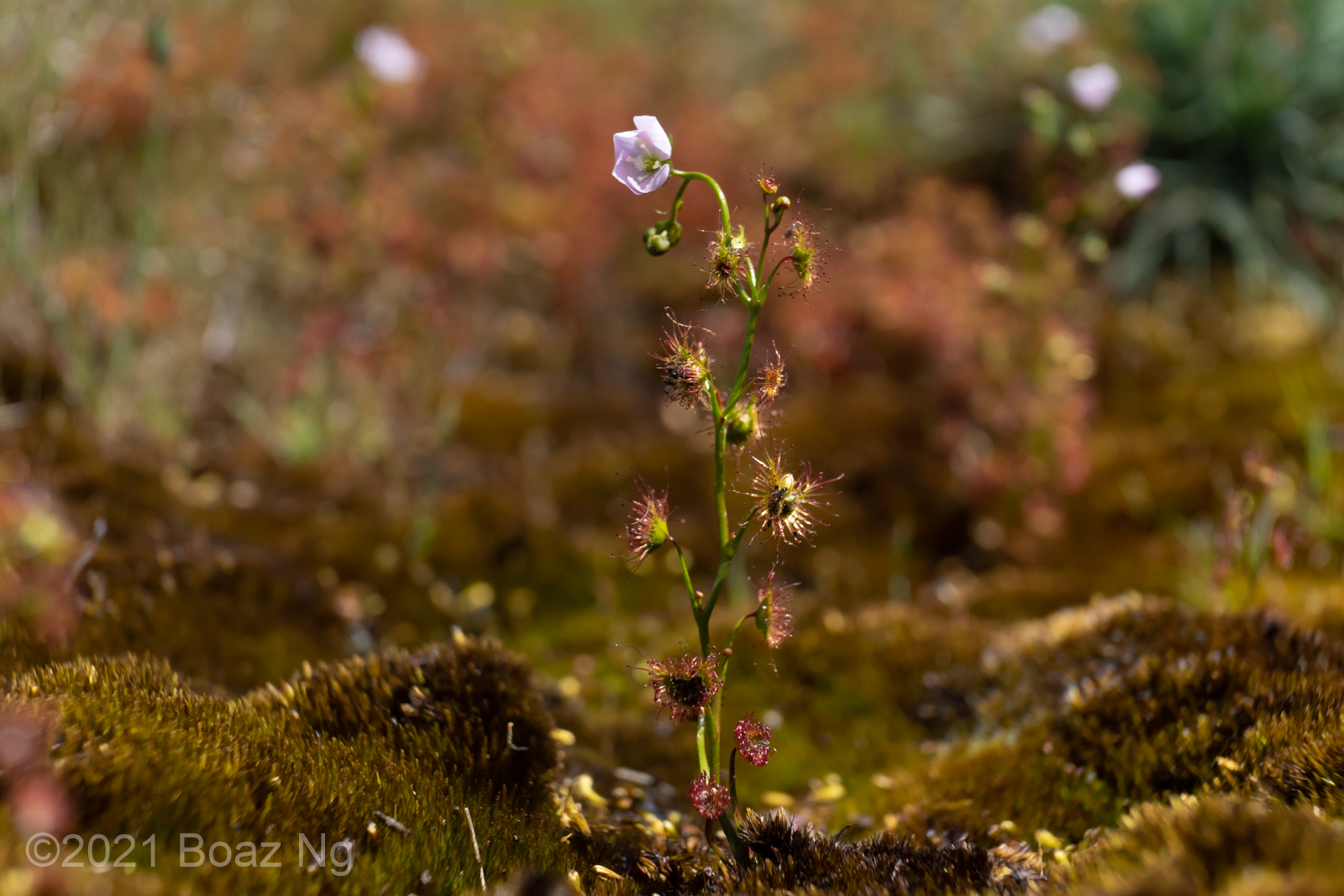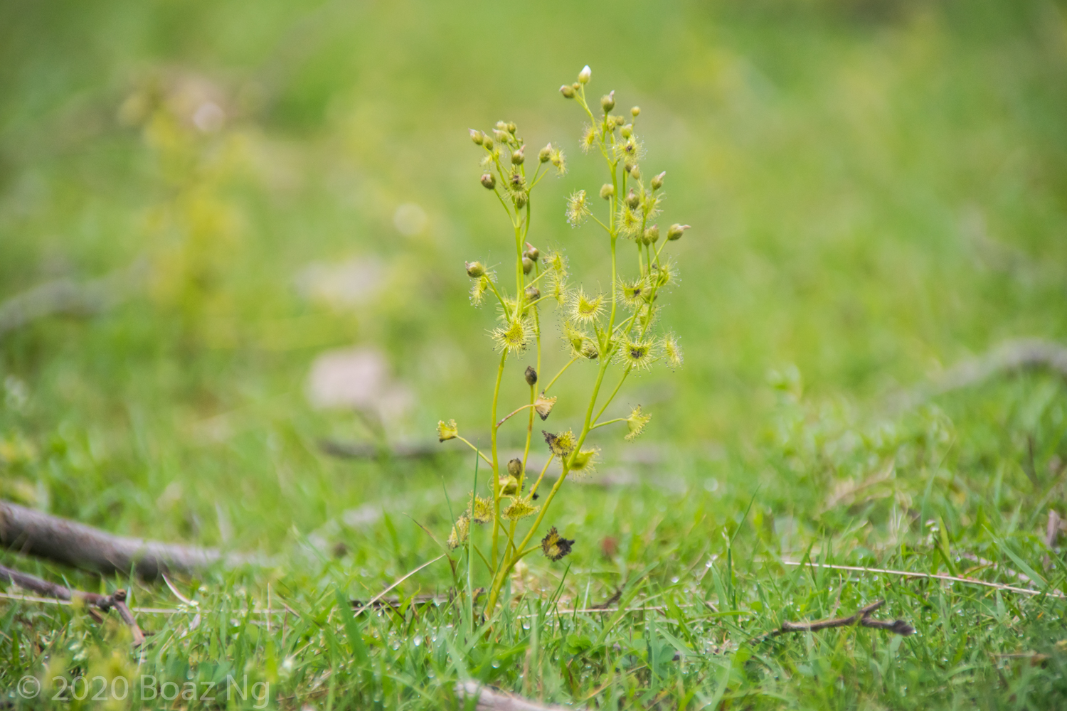 Having seen across VIC and NSW, I agree with de Salas’ view that Drosera gunniana should be separated from D. hookeri. Traits that can be used for its distinction from D. hookeri include a longer stem that branches few times if at all, larger flowers that are usually pink, stems and leaves that are usually olive in colour (rarely red) and smaller seeds that are less strongly ‘bottle’ shaped with a shallow texture. It tends to grow in compacted clay within open woodland and on mossy seepages atop rock outcrops. It should be noted that a similar taxon is present in coastal regions of central NSW to SE QLD but differs from the standard form in that it has sepal surfaces that are variably hairy, fimbriate sepal margins and vivid pink blooms. These plants are currently generally included under D. gunniana but may represent a new taxon.
