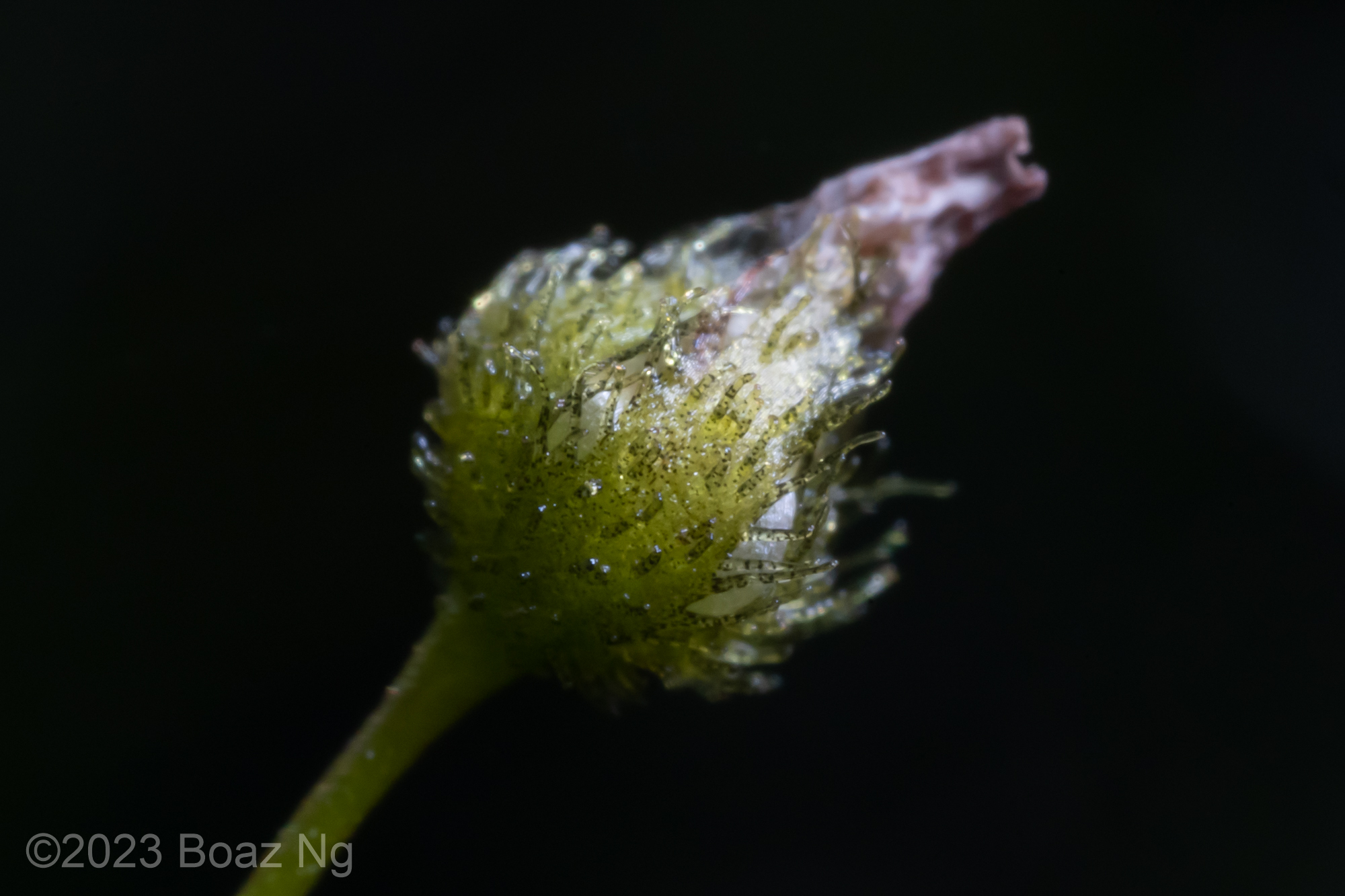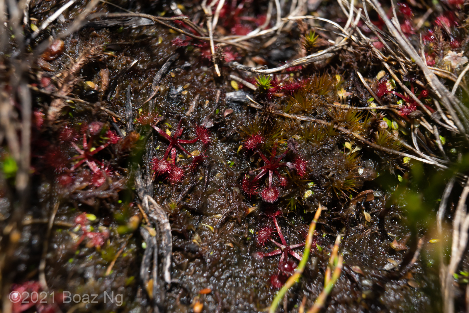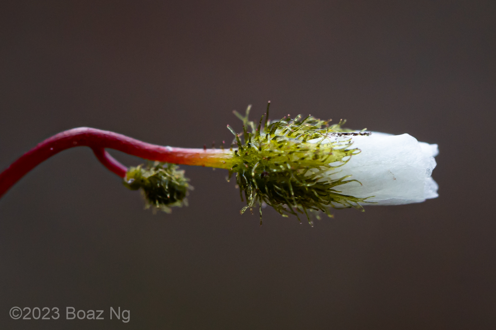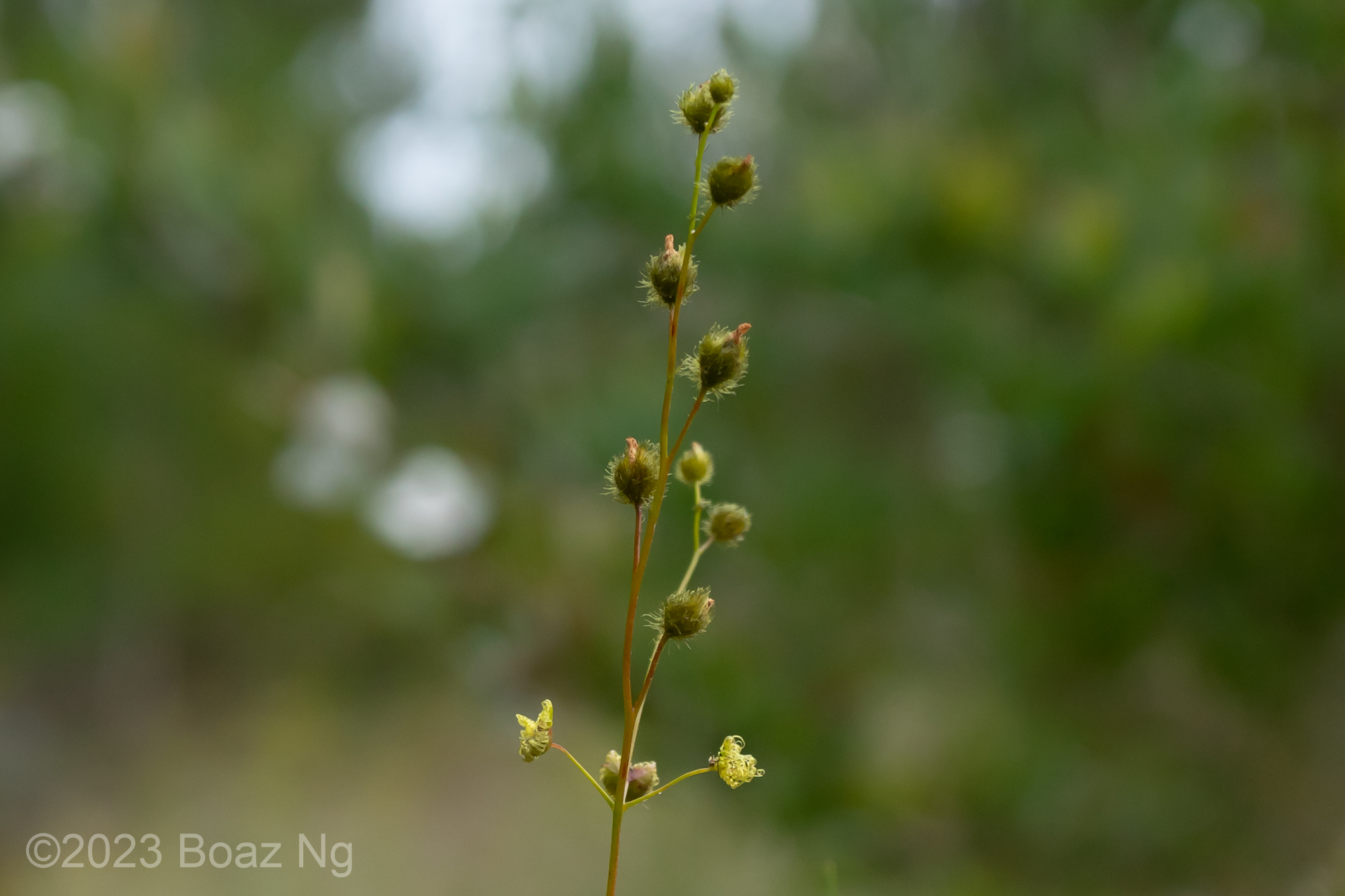 Having seen across VIC and NSW, I agree with de Salas’ view that Drosera gunniana should be separated from D. hookeri. Traits that can be used for its distinction from D. hookeri include a longer stem that branches few times if at all, larger flowers that are usually pink, stems and leaves that are usually olive in colour (rarely red) and smaller seeds that are less strongly ‘bottle’ shaped with a shallow texture. It tends to grow in compacted clay within open woodland and on mossy seepages atop rock outcrops. It should be noted that a similar taxon is present in coastal regions of central NSW to SE QLD but differs from the standard form in that it has sepal surfaces that are variably hairy, fimbriate sepal margins and vivid pink blooms. These plants are currently generally included under D. gunniana but may represent a new taxon.