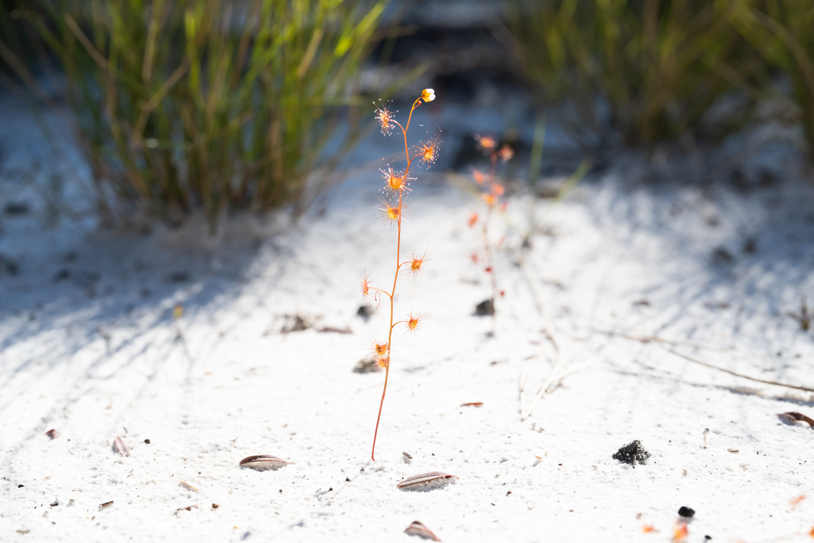 One of the more salient limitations of purely morphologically based analyses is that habitat, geographical, seasonal and genetic information is ignored. When examining how both D. peltata and D. gracilis grow in the wild, further differences become apparent. Drosera gracilis prefers colder environments, including in subalpine creeks and seepages in the NSW and Victorian High Country, regularly extending into lowland swamps in the southernmost states. Conversely, D. peltata is mainly found along the warmer coast of central NSW to the Victorian border and adjacent mid-altitude ranges, where it primarily grows in sandstone-based heathland. Across its range, D. gracilis tends to emerge later in the season compared to sympatric taxa within the complex. In subalpine regions, its growing season is from spring to mid-summer, after the snow has melted. In comparison, D. peltata tends to grow throughout winter and spring. It should be noted that both taxa inhabit converging niches in the sandstone regions of the central Great Dividing Range, where the basal rosette, foliage colouration and growth period can be very similar between the two plants.