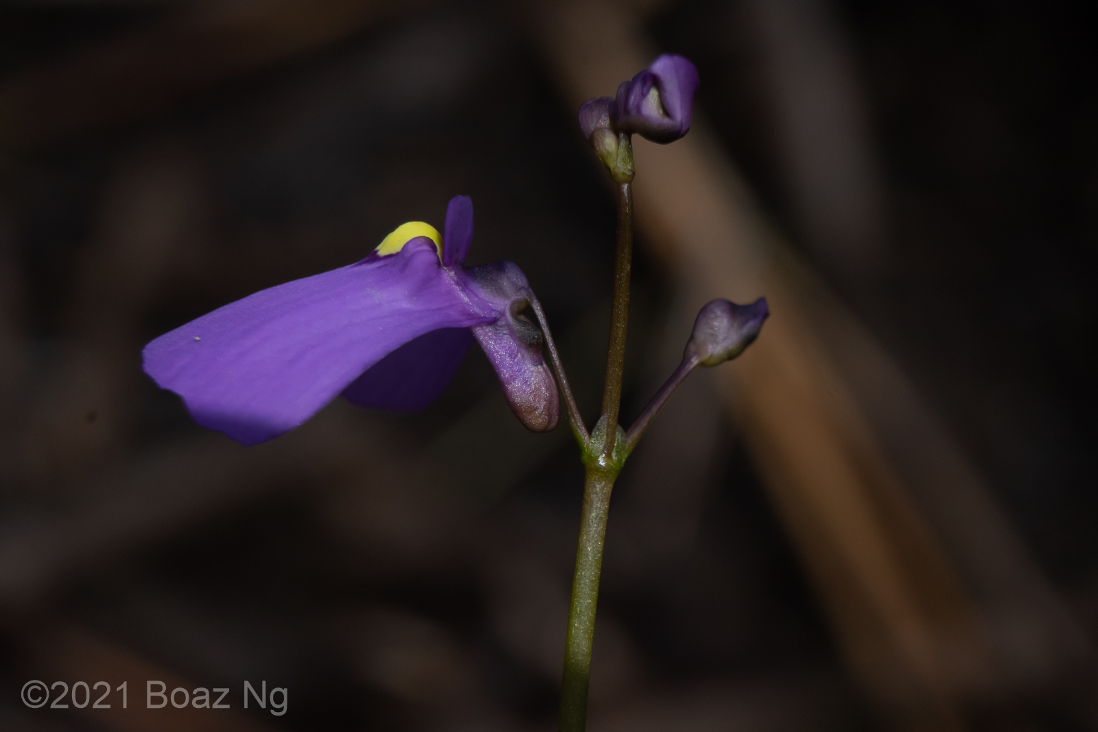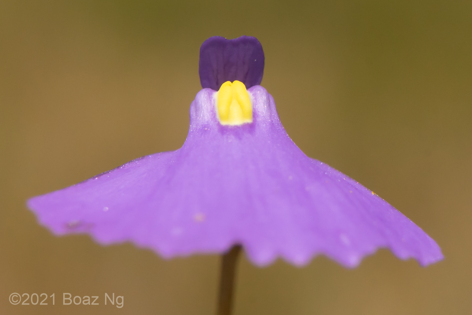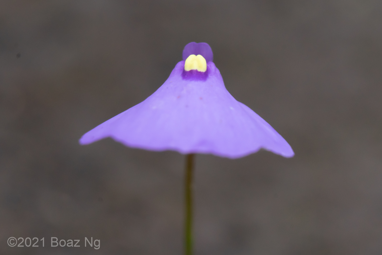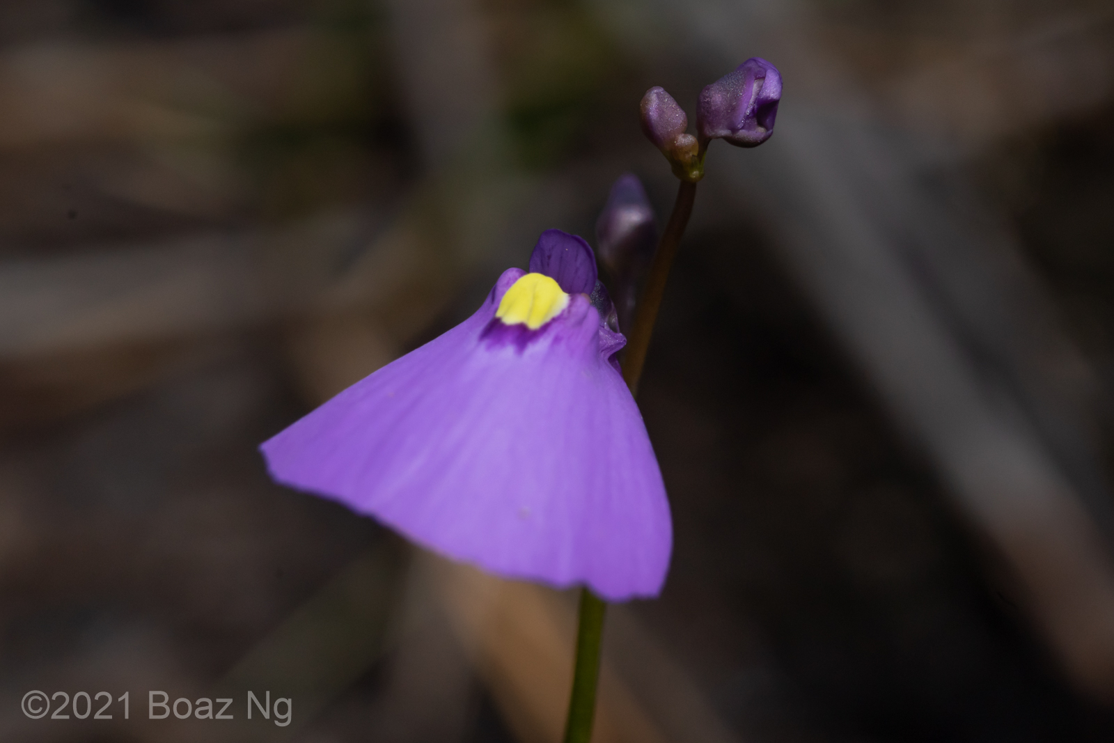 This site was a large swamp that was enclosed by heathy sand dunes and sclerophyll forest. Utricularia oppositiflora was also present here and I suspect that some of these plants might actually be hybrids due to the slight veination on the upper corolla lip and prominent ‘shoulders’. These putative hybrids are not gibbous at the base and lack bract-spurs like U. oppositiflora. The following sets of images are different views of individual specimens.