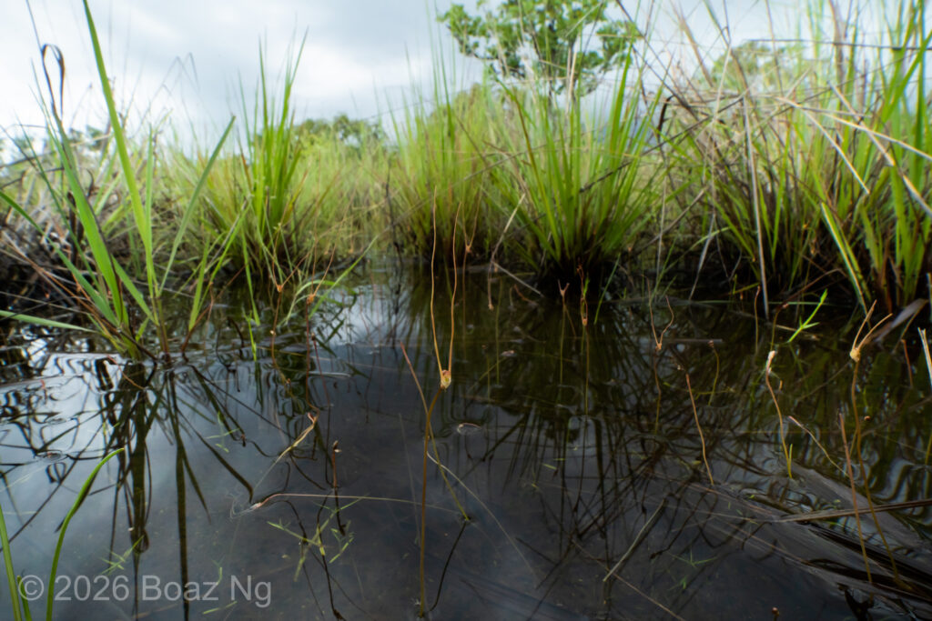 Utricularia albertiana is found alongside two other antennae-bearing bladderworts, U. antennifera and U. dunlopii. Of these three sympatric species, U. albertiana prefers niches with the deepest water, commonly growing under 5-10cm of water. U. antennifera grows in shallow inundunated habitats with around 1cm of water whereas U. dunlopii is usually found growing under thin films of water or in damp sand. Flowering occurs in the later parts of the wet season from February onwards, until its habitat dries out at the start of the dry season.
