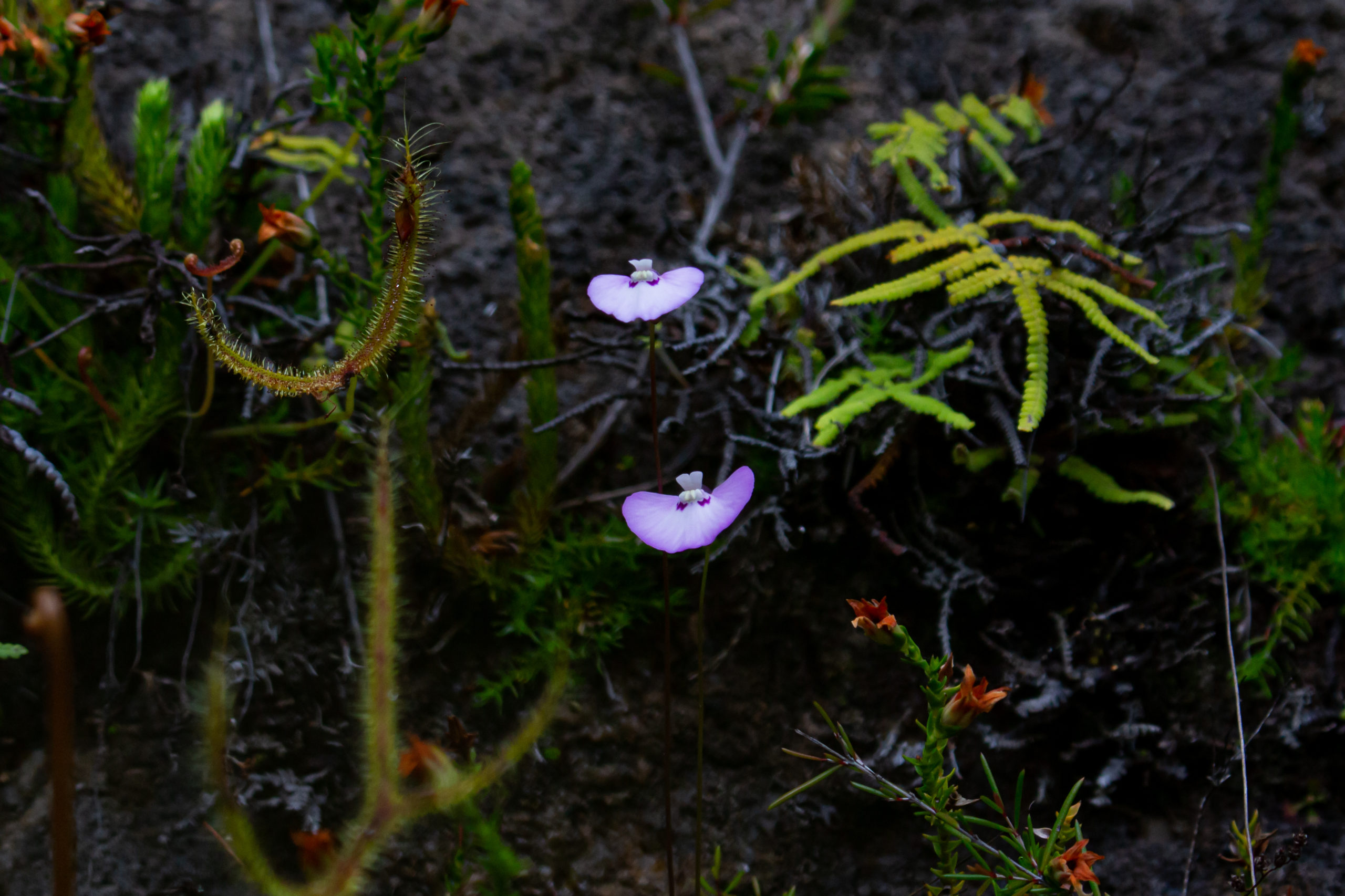 Utricularia uniflora growing in the Blue Mountains. Here, it occupies moss that accumulates on vertical seepages.
