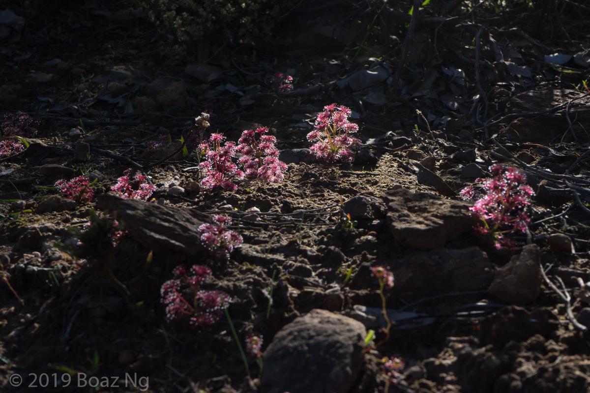 After a long day trekking up two peaks we finally returned to our lodging and got our first full night’s rest in a few days. The next morning, we made our way through the Stirling Range Drive, a 40 km stretch of gravel road that traverses the park. Still a bit sore from the previous day’s hikes, this option allowed us to see a wide variety of habitats along the way with minimal walking. The first section of the road took us through some laterite hills, where I excitedly sighted D. scorpioides, one of the larger pygmy sundews. Its leaves, which are reflexed upwards like a scorpion’s tail, are presented upon an imposing raised stem – a truly fearsome plant, if it were not for its small size!
